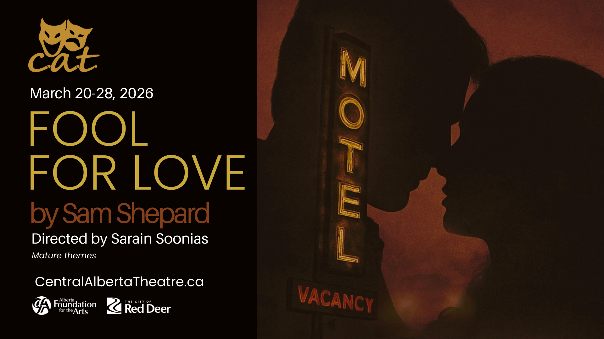 Through searing truth and dark humor, Fool for Love shows the story of two people who just can't live without each other whether they like it or not. May is hiding out at an old motel in the Mojave Desert. Eddie, an old flame and childhood friend, finds her there and threatens to drag her back into the life from which she had fled. Reality and dream; truth and lies; past and present mingle in an explosive, emotional experience. Directed by Sarain Soonias, "Fool For Love" was a finalist for the Pulitzer Prize for Drama in 1984 and is considered one of the most revered creations from legendary playwright Sam Shepherd.
